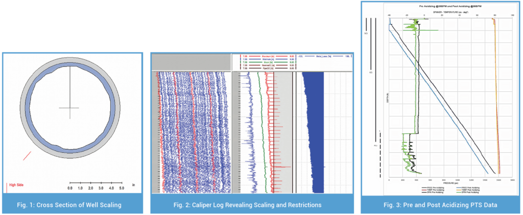 Subsequently, the Vulcan™ FLS (2.25”) was deployed to evaluate the effectiveness of the scale removal program. Comparative pre- and post-intervention production logging (PTS) data confirmed a measurable improvement in well injectivity and overall performance (see Figure 3).
